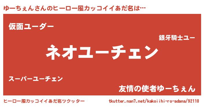 | ヘコむあだ名 | 『ゆーちぇん(遠い目)』『ゆーを』 |
