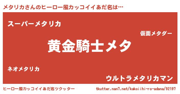 | 意味不明あだ名 | 『とにかく怪しいメタリカ』 |