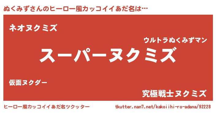 | ポケモン風あだ名 | 『ヌクチュウ』『ヌクゴンZ』 |
