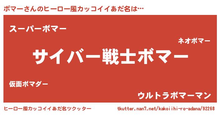 ボマーさんのヒーロー風カッコイイあだ名をツクッター!