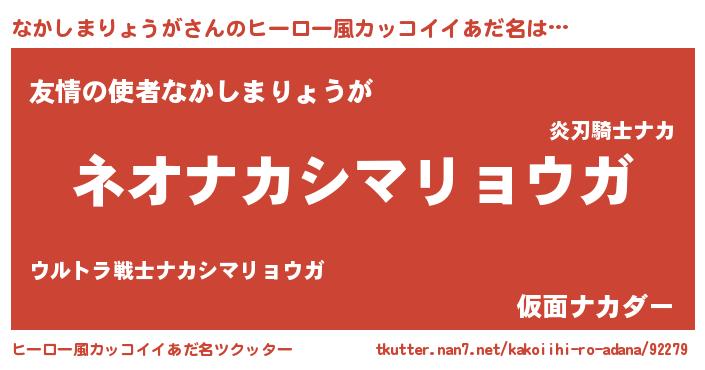 | 意味不明あだ名 | 『永久保存なかしまりょうが』 |