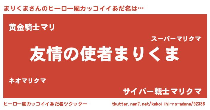 | 女子向けラノベタイトル風あだ名 | 『まりくま夫妻のなれそめ』 |