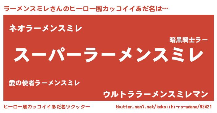 | 男性向けラノベタイトル風あだ名 | 『ラーメンスミレの憂鬱』 |