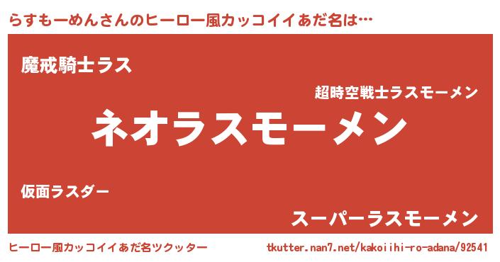 | 男性向けラノベタイトル風あだ名 | 『らすもーめんという概念が存在しない退屈な世界 』 |