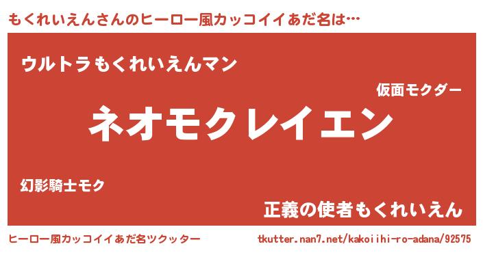 | 男性向けラノベタイトル風あだ名 | 『もくれいえんという概念が存在しない退屈な世界 』 |