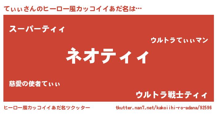 | 胡散臭い通販商品みたいなあだ名 | 『絶対に幸福をもたらす健康食品…その名も「てぃぃ」』 |