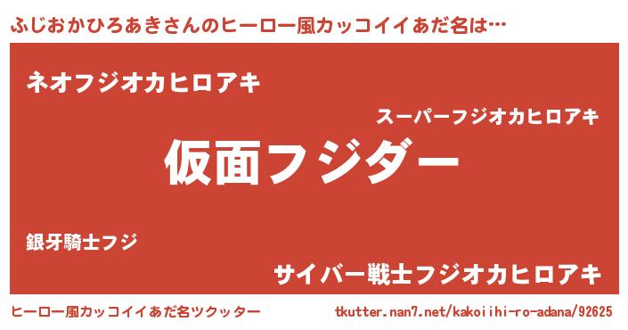 | 男性向けラノベタイトル風あだ名 | 『魔弾の王とふじおかひろあき』 |