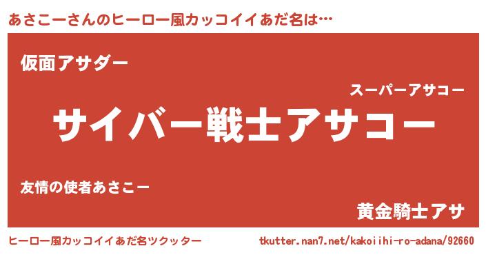 あさこーさんのヒーロー風カッコイイあだ名をツクッター!