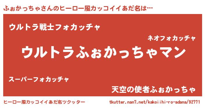 | 女子向けラノベタイトル風あだ名 | 『ふぉかっちゃの玉の輿計画!』 |
