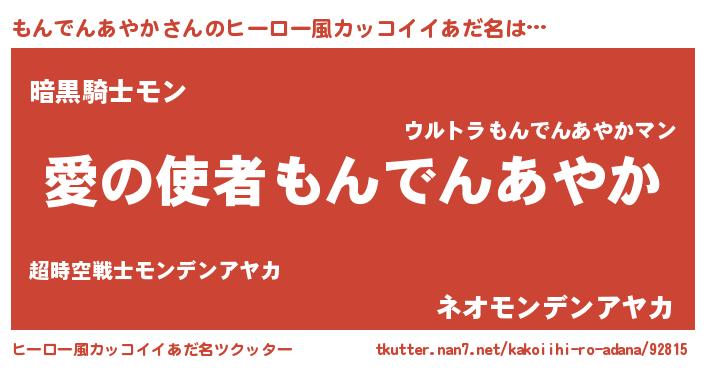 | 女子向けラノベタイトル風あだ名 | 『もんでんあやか恋絵巻』 |