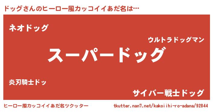 | 男性向けラノベタイトル風あだ名 | 『ドッグに滅ぼされるだけの簡単なお仕事です』 |