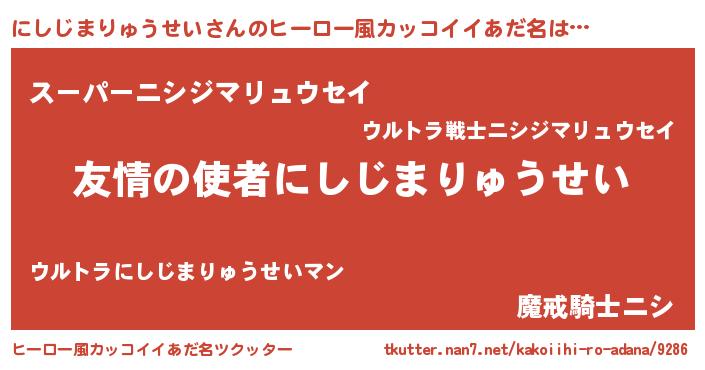 | 男性向けラノベタイトル風あだ名 | 『転生したらにしじまりゅうせいだった件』 |