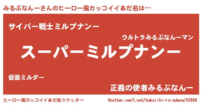 | 男性向けラノベタイトル風あだ名 | 『みるぷなんーの憂鬱』 |