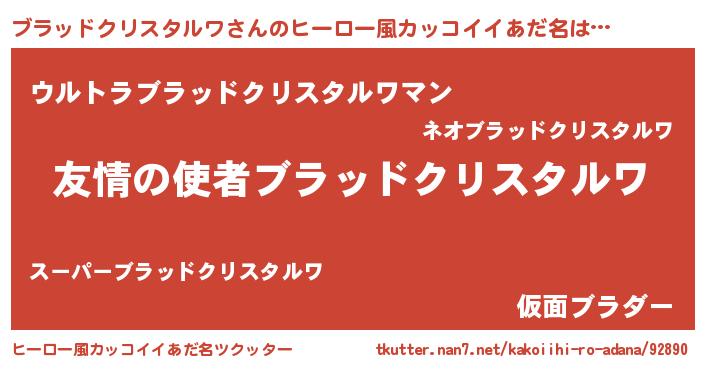 | 男性向けラノベタイトル風あだ名 | 『はたらくブラッドクリスタルワさま!』 |