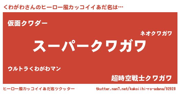 男性向けラノベタイトル風あだ名 | 『くわがわの憂鬱』『クワガワスレイヤー』 |