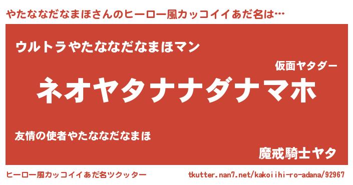 やたななだなまほさんのヒーロー風カッコイイあだ名をツクッター!
