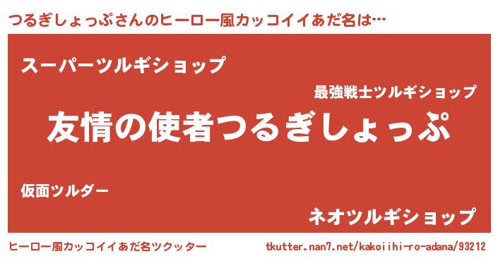 | 男性向けラノベタイトル風あだ名 | 『おまえをオタクにしてやるから、俺をつるぎしょっぷにしてくれ! 』 |