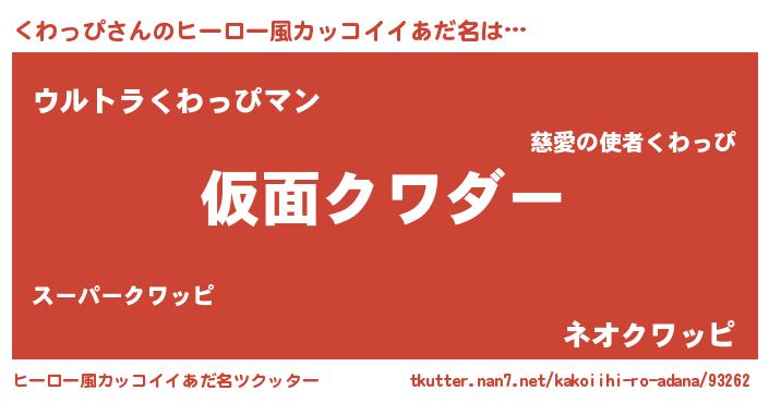| 男性向けラノベタイトル風あだ名 | 『この素晴らしい世界にくわっぴを!』 |