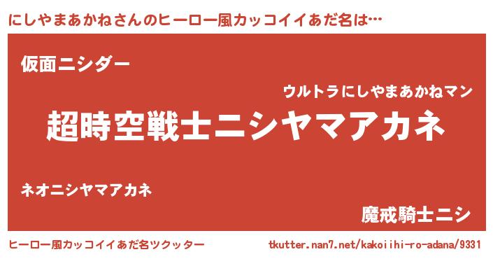 | 女子向けラノベタイトル風あだ名 | 『にしやまあかねなんてお断りですっ。』 |