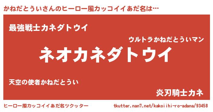 | 男性向けラノベタイトル風あだ名 | 『うちのかねだとういが世界を掌握している!』 |