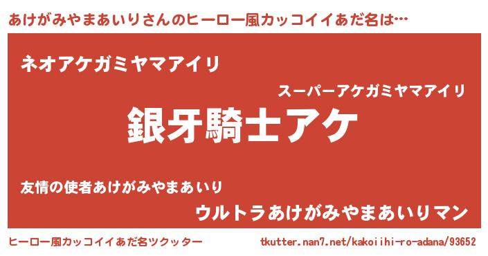 | 欧米人風あだ名 | 『あけがみやまあいり・ステッグマイヤー』 |
