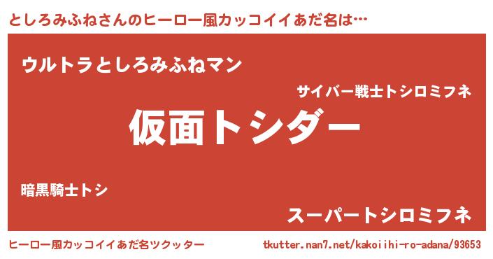| 男性向けラノベタイトル風あだ名 | 『としろみふね~年齢イコール彼女いない歴の魔法使い~』 |