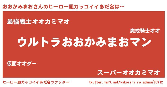 | 男性向けラノベタイトル風あだ名 | 『転生したらおおかみまおだった件』 |
