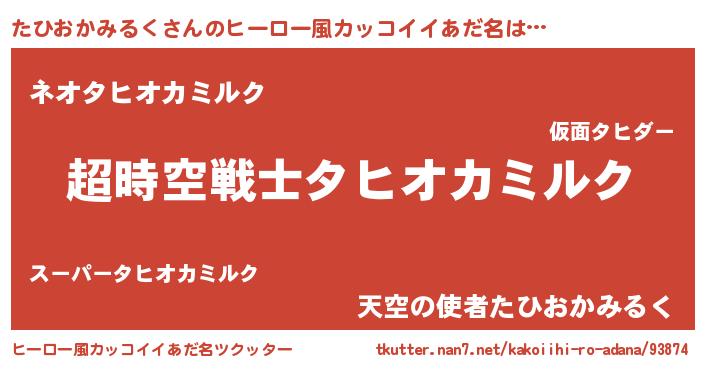 | 女子向けラノベタイトル風あだ名 | 『たひおかみるくなんてお断りですっ。』 |