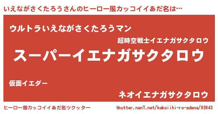 | 男性向けラノベタイトル風あだ名 | 『いえながさくたろうの憂鬱』 |