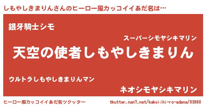 | 男性向けラノベタイトル風あだ名 | 『ノーゲーム・ノーシモヤシキマリン』 |