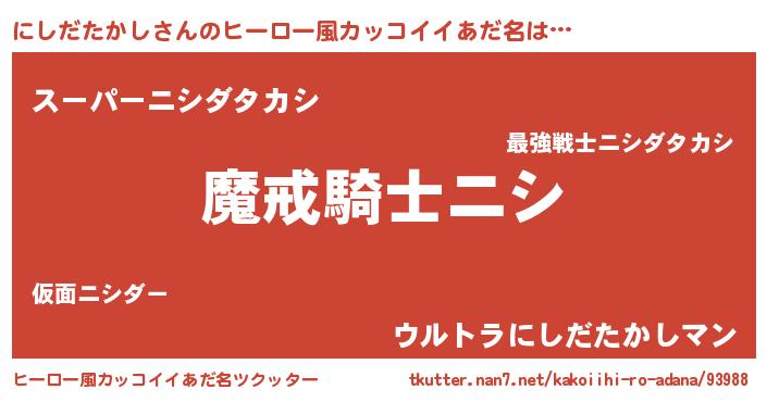 | ポケモン風あだ名 | 『ヒニシダタカシ』『ニシキング』 |