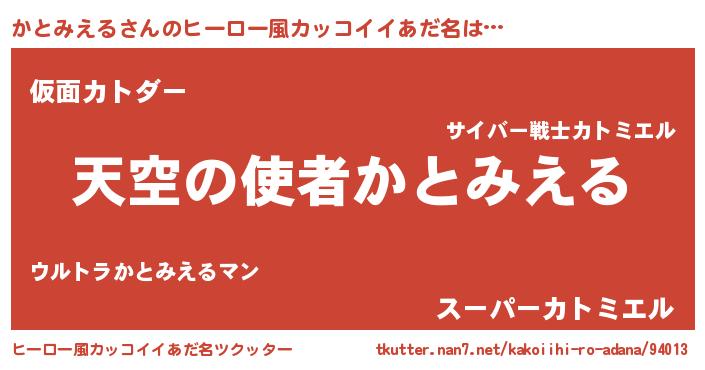 かとみえるさんのヒーロー風カッコイイあだ名をツクッター!