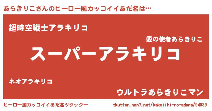 | 男性向けラノベタイトル風あだ名 | 『あらきりこの憂鬱』 |