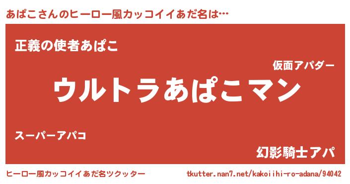| 男性向けラノベタイトル風あだ名 | 『やはりあぱこの青春ラブコメはまちがっている 』 |