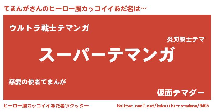 | 男性向けラノベタイトル風あだ名 | 『てまんがの憂鬱』『魔弾の王とてまんが』 |