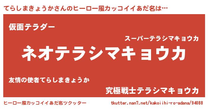 | 伝説のあだ名 | 『古文書に記された勇者てらしまきょうか』 |