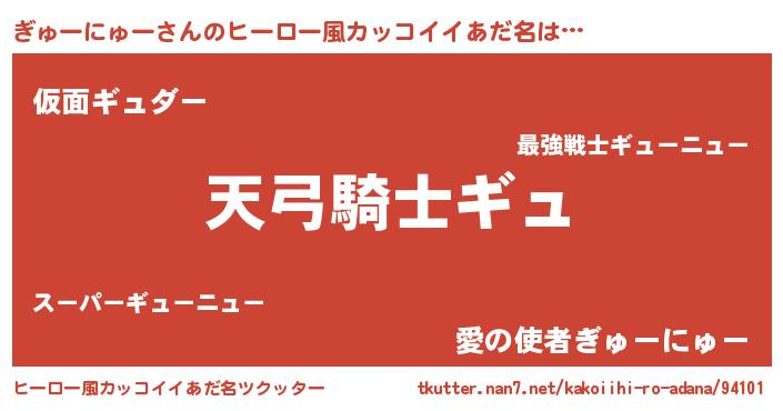 | 男性向けラノベタイトル風あだ名 | 『ぎゅーにゅー~年齢イコール彼女いない歴の魔法使い~』 |