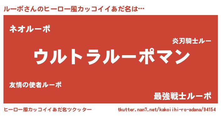 | ポケモン風あだ名 | 『ルーポダネ』『ゼニルー』 |