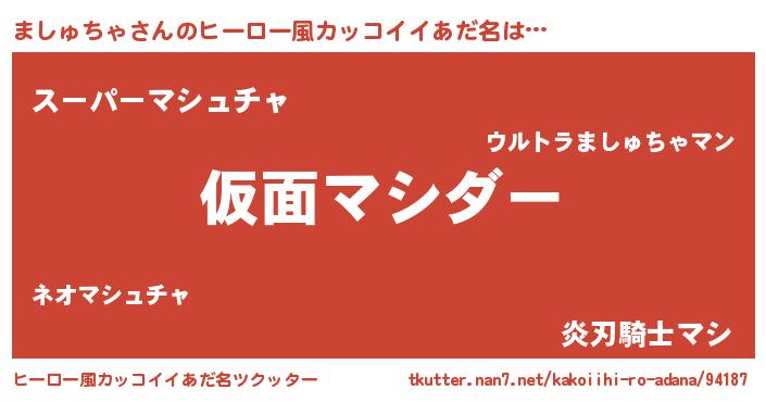 | 男性向けラノベタイトル風あだ名 | 『この素晴らしい世界にましゅちゃを!』 |
