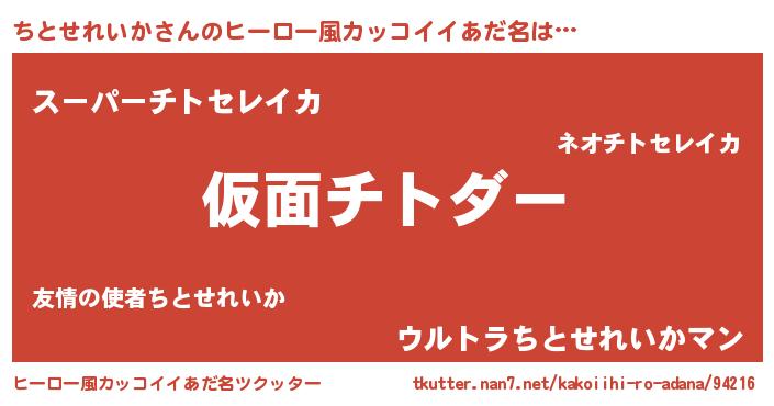 | 意味不明あだ名 | 『住所不定無職ちとせれいか(13歳)』 |
