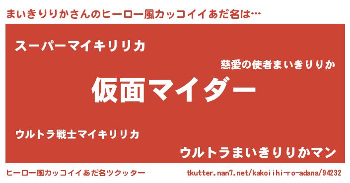 | 意味不明あだ名 | 『住所不定無職まいきりりか(93歳)』 |