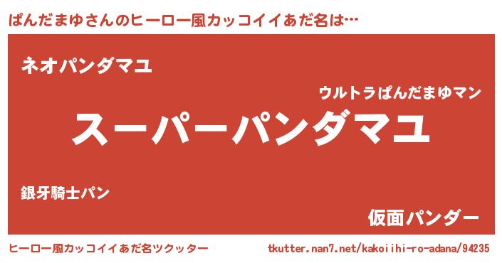 ぱんだまゆさんのヒーロー風カッコイイあだ名をツクッター!