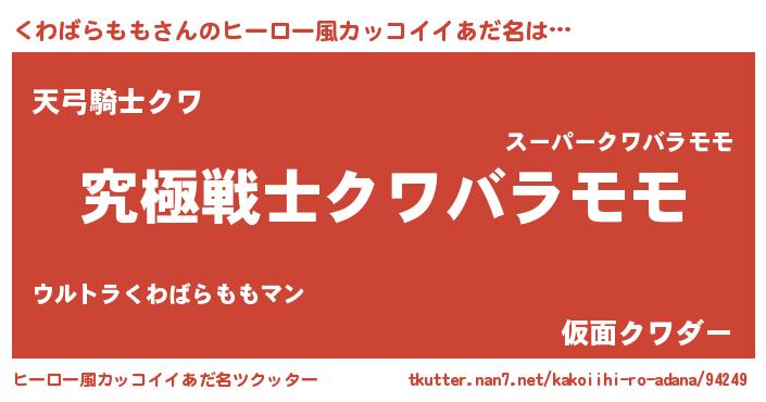 | 意味不明あだ名 | 『自称くわばらもも』 |
