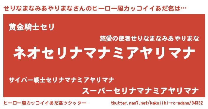 | ヘコむあだ名 | 『せりなまなみあやりまな(笑)』『せりにー』 |