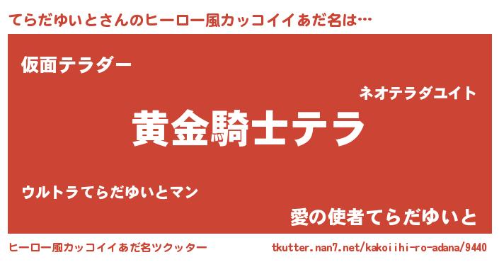 | ポケモン風あだ名 | 『ヒテラダユイト』『テラゴンZ』 |