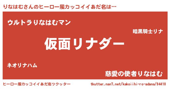 | 男性向けラノベタイトル風あだ名 | 『この素晴らしい世界にりなはむを!』 |