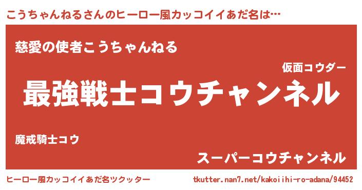 | 男性向けラノベタイトル風あだ名 | 『こうちゃんねるに滅ぼされるだけの簡単なお仕事です』 |
