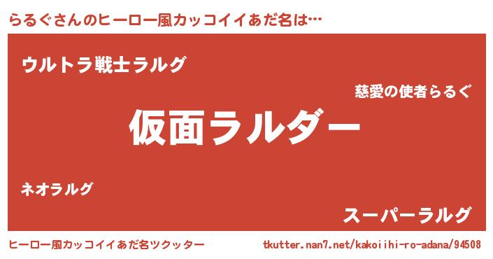 | 意味不明あだ名 | 『住所不定無職らるぐ(93歳)』『自称らるぐ』 |