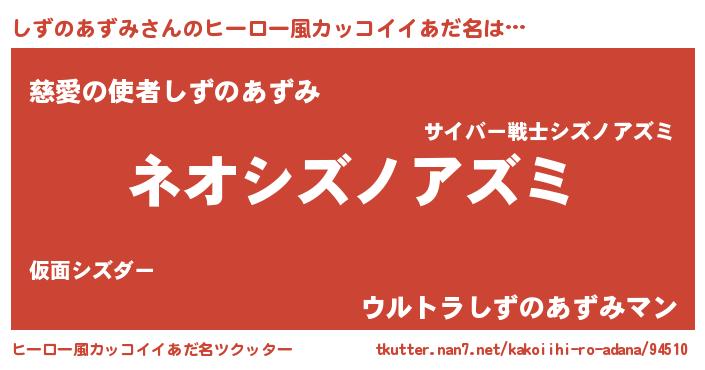 | 女子向けラノベタイトル風あだ名 | 『しずのあずみの契約王妃』 |