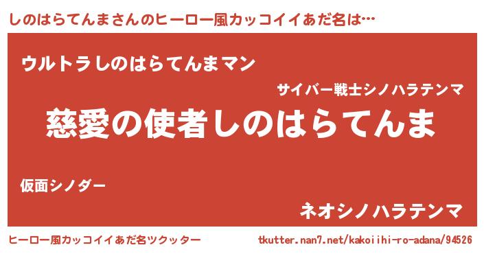| 男性向けラノベタイトル風あだ名 | 『ノーゲーム・ノーシノハラテンマ』 |